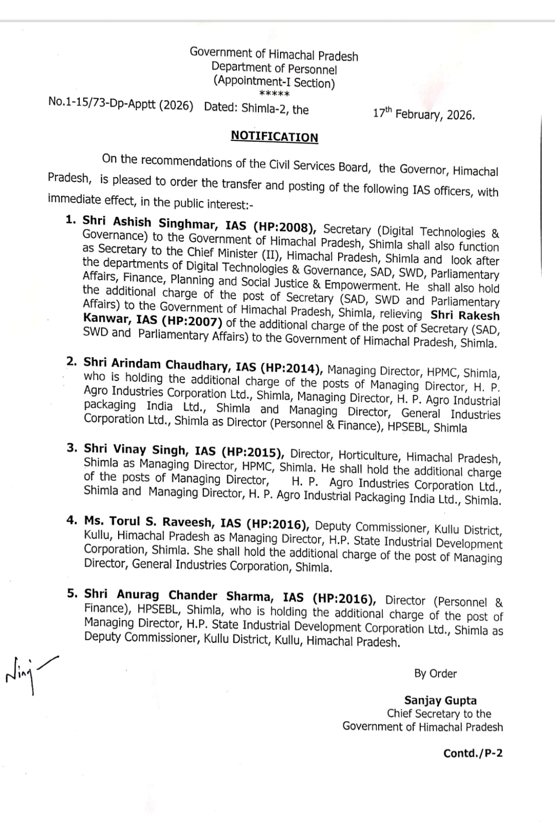 अनुराग चंद्र होंगे कुल्लू के नए डीसी, पति और पत्नी बने जिलों के DC, IAS अधिकारियों के तबादले…..