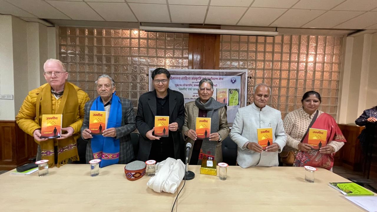 शिमला : हिमालय साहित्य संस्कृति एवं पर्यावरण मंच द्वारा हिमाचल भाषा कला संस्कृति अकादमी के सहयोग से आज शिमला के ऐतिहासिक गेयटी थिएटर सभागार में वरिष्ठ लेखक, शिक्षक और सामाजिक कार्यकर्ता जगदीश कश्यप की दो पुस्तकों ….. कहानी संग्रह “उम्मीद” और कविता संग्रह “सच कह दूं तो चलूं” का लोकार्पण किया गया। लोकार्पण के समय मंच विराजमान आयोजन की अध्यक्षता कर रहे विजय विजय कुमार, आई ए एस, विशेष सचिव, पर्यटन एवं नागरिक उड्डयन, हिमालय मंच के अध्यक्ष एस आर हरनोट, वरिष्ठ आलोचक हेमराज कौशिक और युवा लेखक राजन तनवर उपस्थित रहे। उसके बाद जगदीश कश्यप को उनके 75 वर्ष पूर्ण करने पर लेखन और शिक्षा के क्षेत्र में सराहनीय योगदान हेतु सम्मानित भी किया गया। यह जानकारी हिमालय मंच के अध्यक्ष और लेखक एस आर हरनोट ने दी।